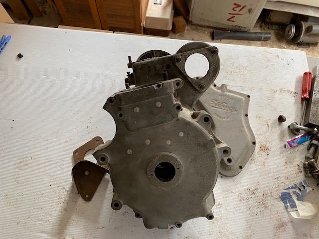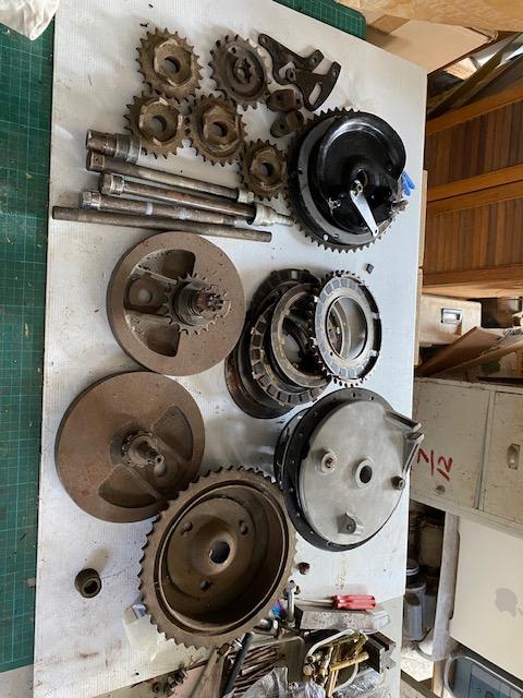 See pictures. Some usable, probably some not. Includes rough but no major damage MOV/MAC crankcases and good flywheels, Early brake, sprocket and brakeplate. later Front hub/brake (not full width) I guess MSS MAC. 7 plate clutch parts, Chainwheel and plates. Plus other bits.